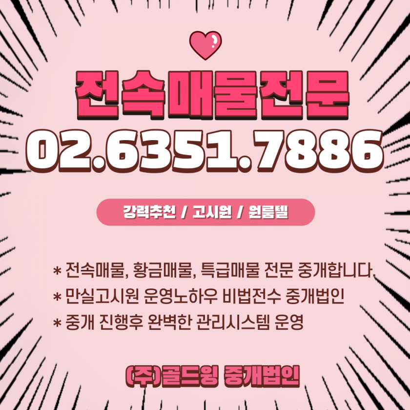 ♠♠ 서울 경기 충청지역 대부분의 고시원 원룸텔 무권리 건물주 임대 물건을 보유하고 있습니다